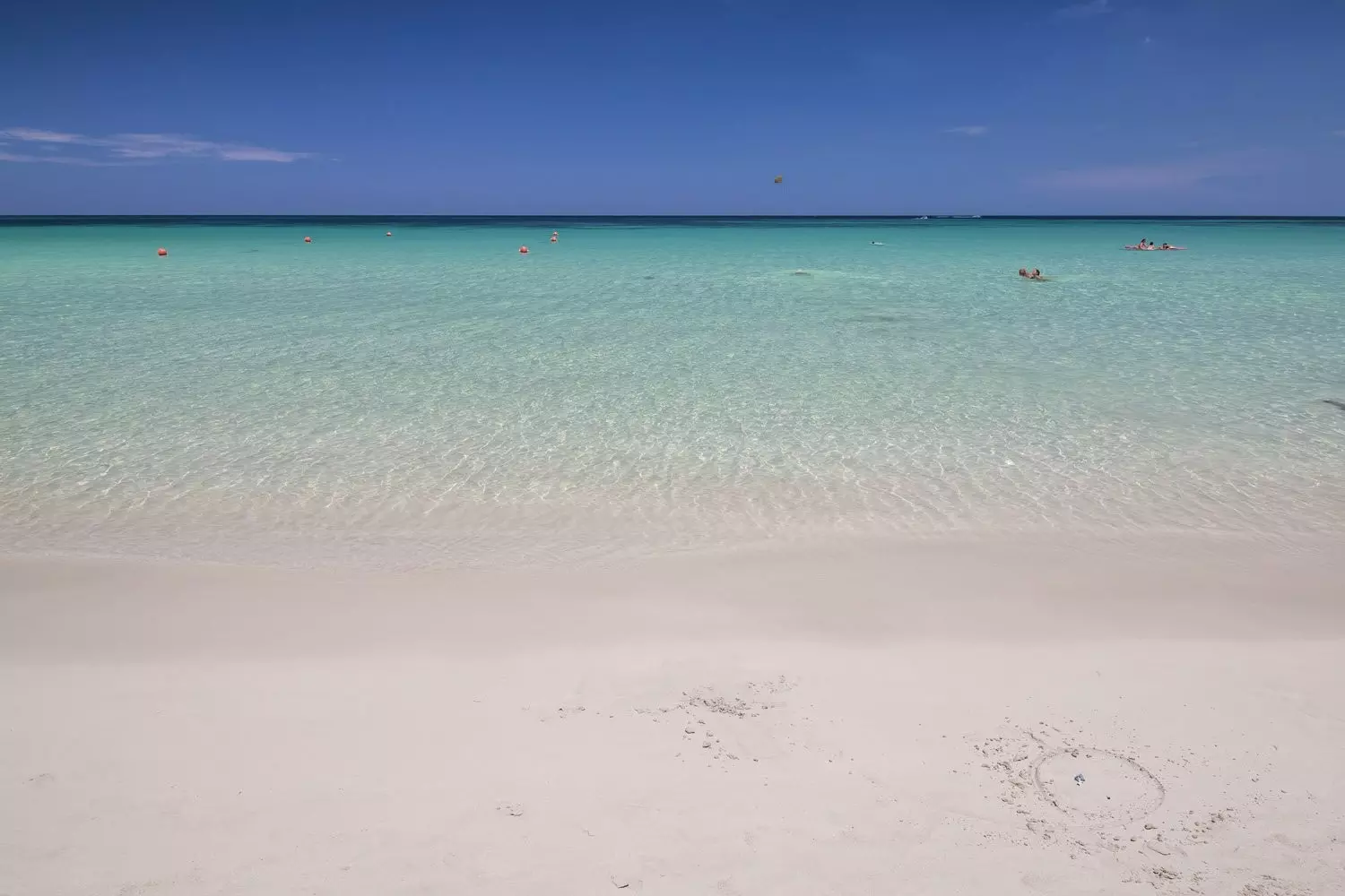 Lunga e ampia spiaggia di finissima sabbia bianca. Le zone d’ombra sono naturali e attrezzate con lettini gratuiti fino ad esaurimento; teli mare gratuiti.